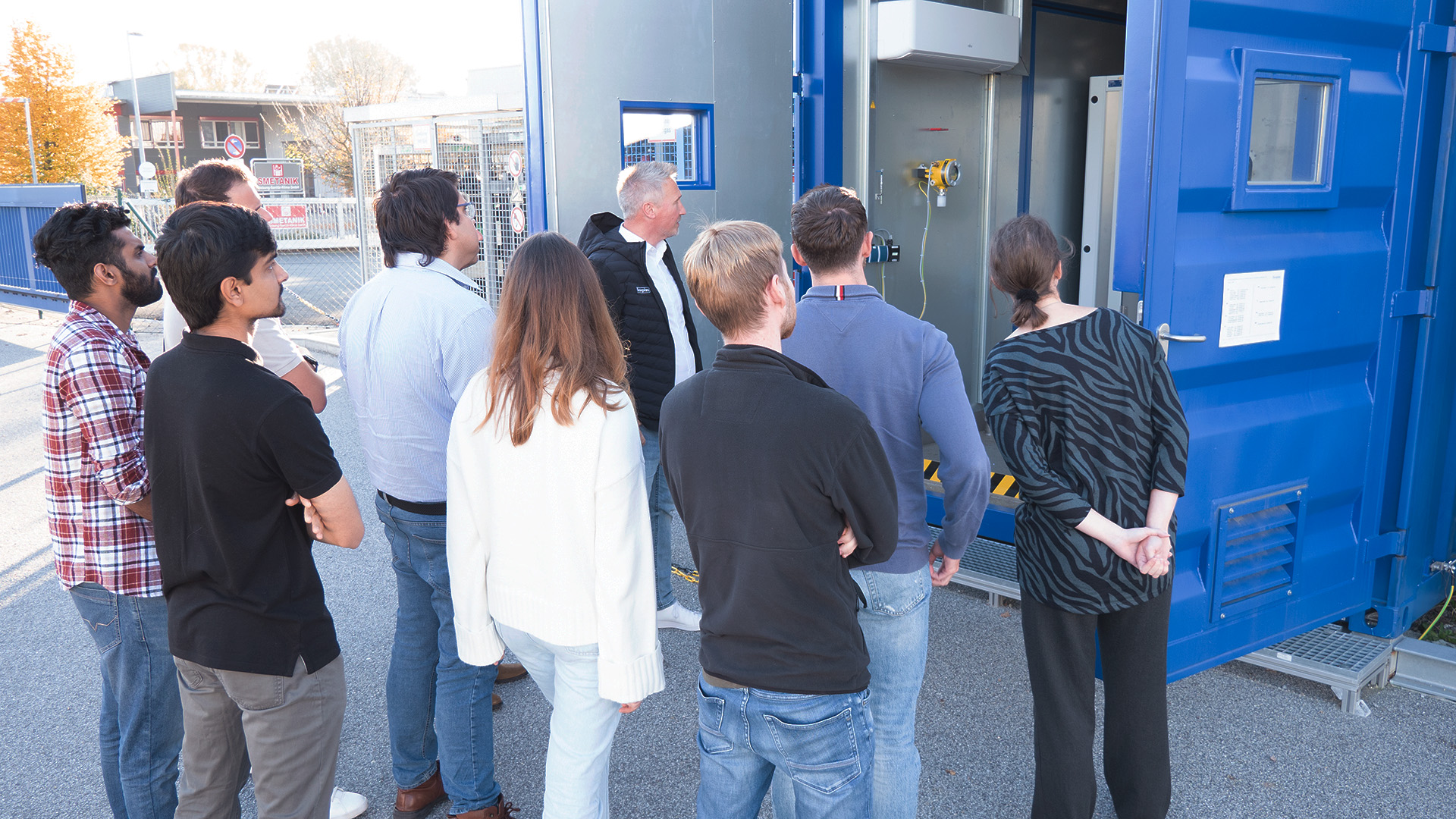 Michael Frankl und Werner Riederer führten die Studierenden durch einen spannenden Nachmittag zum Thema Wasserstoff. Zuerst erfuhren sie in einem Vortrag, wie unser Wasserstoff-Testcenter entstanden ist und welche Technologie sowie Infrastruktur dahinterstecken.